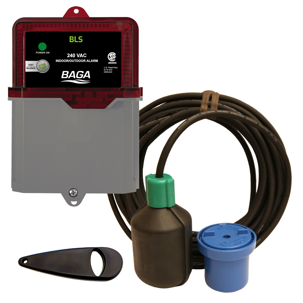 Baga högnivålarm BLS-N är ett nivålarm med ljud- och ljuslarm. Nivåvippan styr larmenheten.