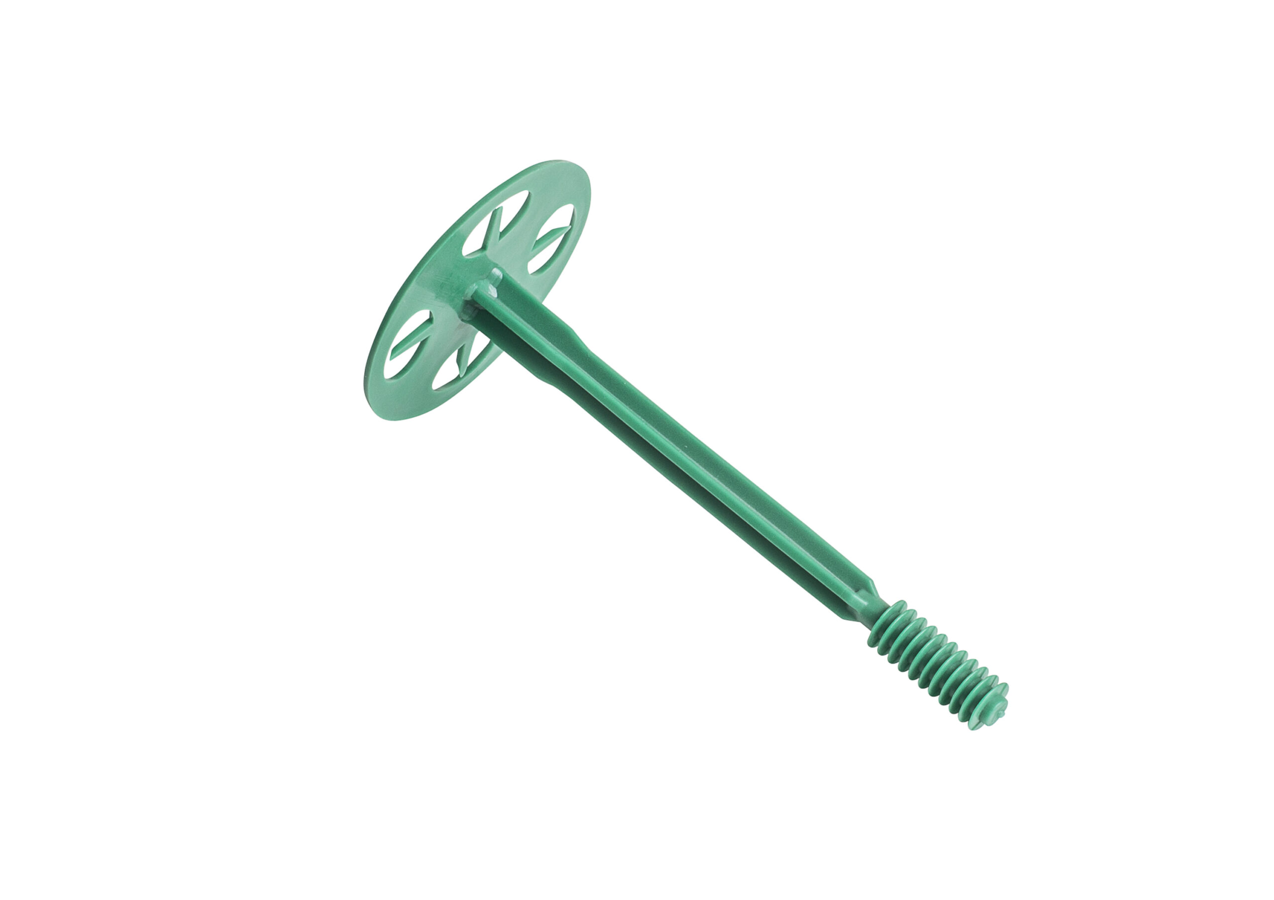 Isodrän hållare STD för 100 mm fäster Isodrän-skivor mot grundmuren snabbt och säkert. Använd 1–2 hållare per skiva beroende på underlag.