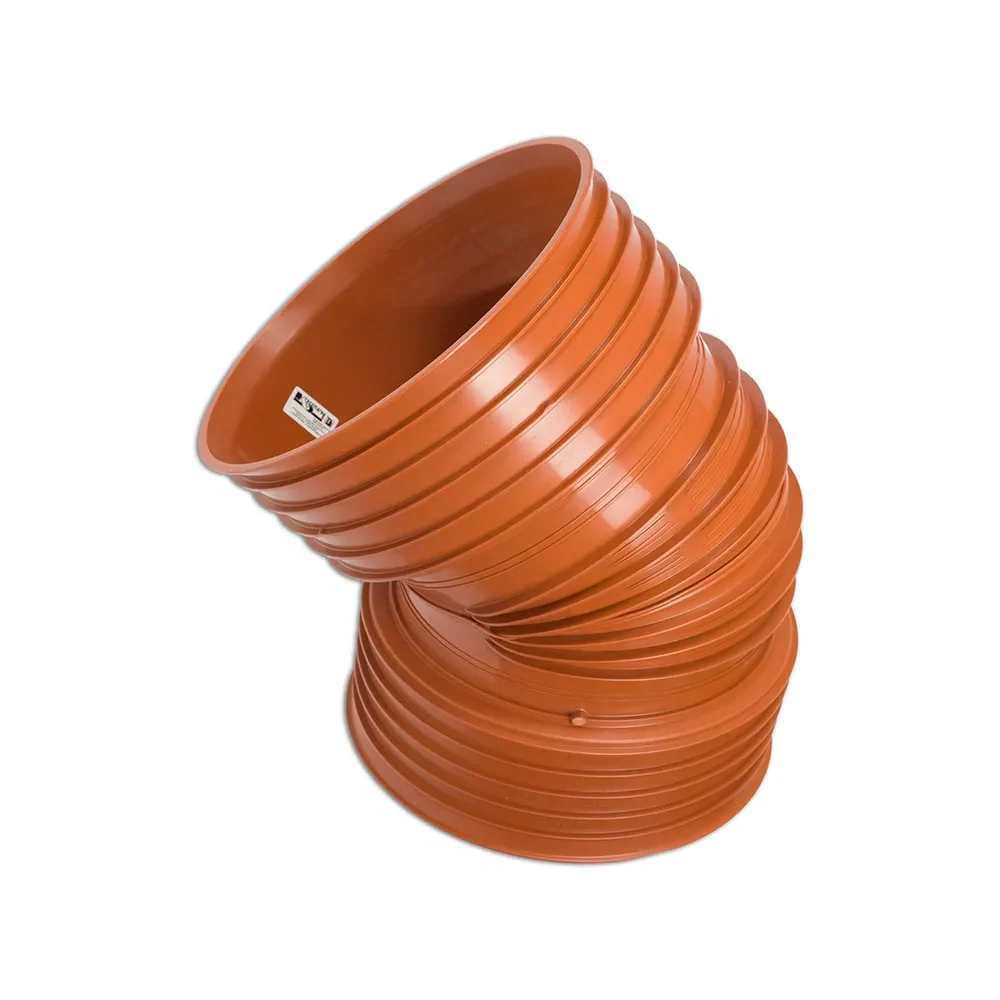Samtidigt ger den dubbelväggiga konstruktionen hög styrka och lång livslängd även i krävande markmiljöer. Tack vare den genomtänkta designen kan du montera snabbt och säkert, vilket sparar tid vid installation. Därför passar böjen lika bra under trafikerade vägar som i mindre belastade områden.