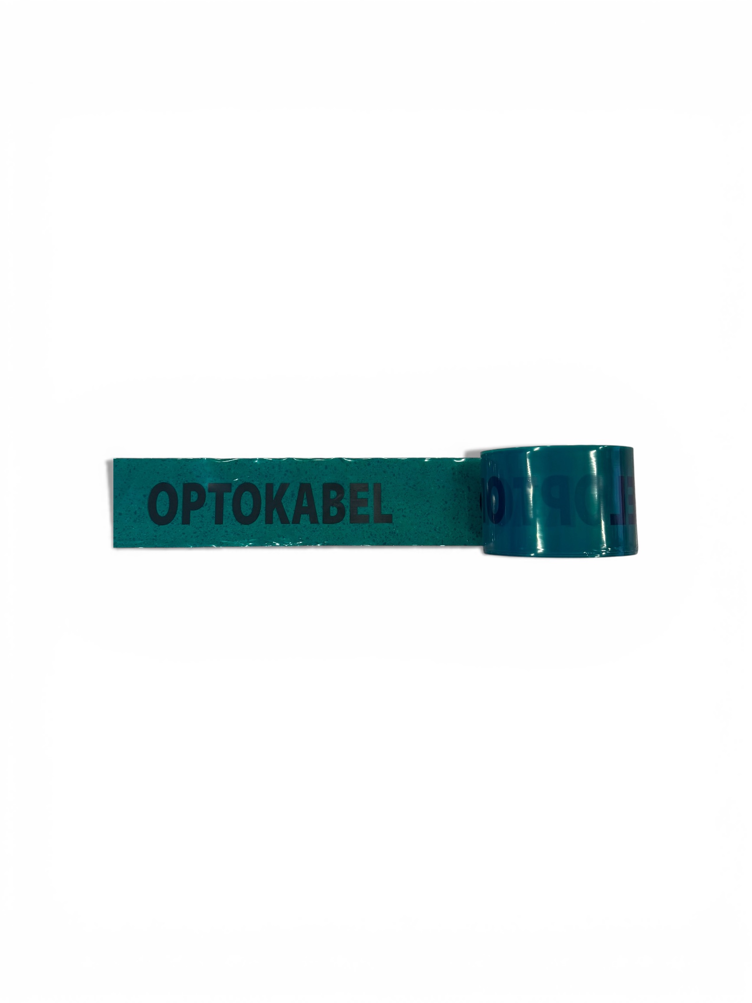 Märkband grön optokabel 125 mm x 250 m markerar nedgrävda fiberkablar tydligt i marken. Du placerar bandet ovanför kabeln för att varna vid framtida grävarbeten och minska risken för skador.